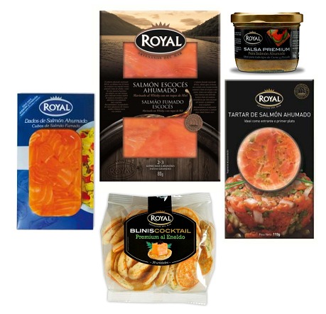 Además, este año Royal ha presentado nuevas propuestas ideales para los amantes del salmón y de otros pescados y que resultan ideales para estas fechas: Tartar de salmón ahumado 110g, el Salmón Ahumado Marinado con brandy y eneldo 80g, y el Salmón Escocés Ahumado Marinado con whisky y un toque de miel 80g. También cabe destacar otras propuestas muy solicitadas durante la Navidad, que complementan el consumo del salmón ahumado, como la Salsa Premium para ahumados 100g y las distintas modalidades de Blinis (Classic, Biológicos sin gluten y Cocktail Premium al eneldo).