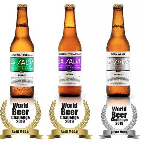 Las cervezas de LA SALVE premiadas son LA SALVE Txirene (91 puntos) y LA SALVE Botxo (90 puntos) con sendos Oros y LA SALVE Sirimiri con una Plata (89 puntos).
