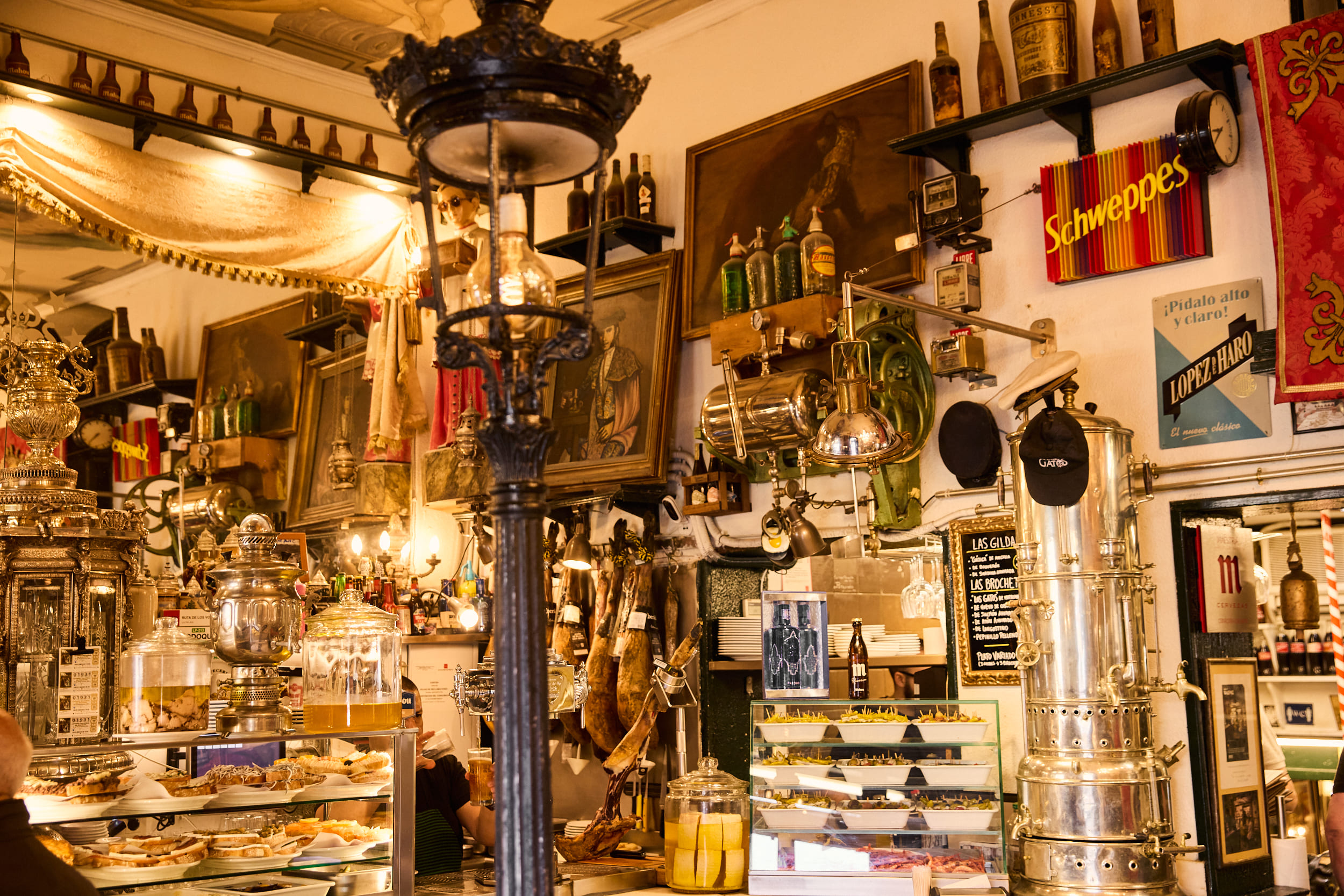 Todo comenzó de manera humilde cuando Miguel, un hostelero de la Costa del Sol, decidió transformar una antigua mercería en una pequeña cervecería. Con apenas una lata de anchoas y algunas cervezas, nació un espacio que, con los años, se convertiría en un ícono madrileño. Regentada por un “boquerón” y una palmera, Miguel López y su familia han trabajado codo a codo para preservar el carácter y el alma de este rincón tan especial, que hoy en día regentan Lola Creagh y su hijo Juan López.