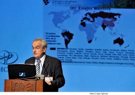 A lo largo de su exposición, el director general de la OIV comentó los principales aspectos de la coyuntura mundial para el sector, entre ellos una reducción de la superficie cultivada mundial del 4% desde 1995, fundamentalmente en la UE, donde se han perdido más de 300.000 hectáreas por los programas subvencionados de arranque.