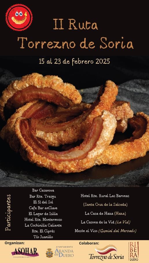 Además, durante los días en los que tendrá lugar la ruta se celebrará la fase clasificatoria Ribera del Concurso El Mejor Torrezno del Mundo, organizada junto con la Marca de Garantía Torrezno de Soria. En la pasada edición, el ganador del concurso fue el restaurante Montermoso.