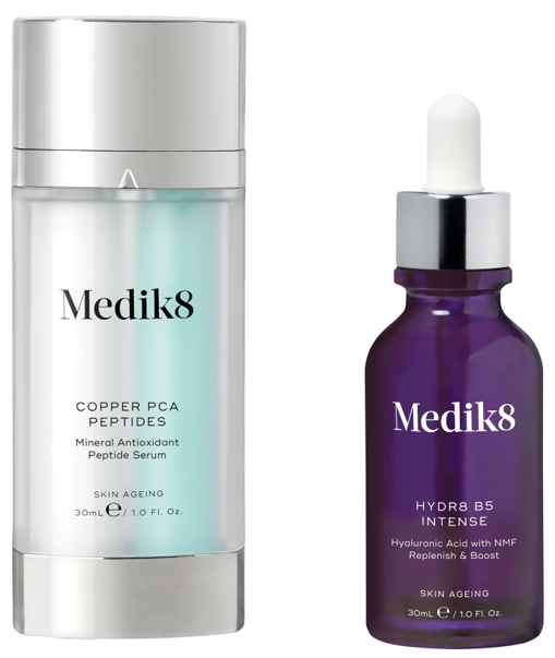 Igual que en una casa no se trata tanto de cuánto ordenas, sino de cuánto evitas desordenar, con nuestra piel ocurre lo mismo. Siempre es mejor prevenir que curar, y es por ello que deberemos acudir a fórmulas que creen una barrera protectora en la piel, garantizando que está protegida de rayos UVA y UVB, que mantenemos unos niveles óptimos de hidratación, y que aseguramos un prevención en la inflamación celular que causa el envejecimiento por cambios bruscos, por ejemplo, en las temperaturas. Dos grandes aliados en este sentido son Copper PCA Peptides (105€) e Hydr8 B5 Intense (75€). Mientras que el primero -con una fórmula de péptidos de cobre patentados por Medik8- imita el sistema natural del cuerpo para defenderse de los radicales libres que alteran a nivel celular, el segundo hidrata la piel debido a su contenido en ácido hialurónico de múltiple peso. Pero no solo eso, también crea una barrera, ya que cuenta en su fórmula con extracto de baya de Saskatoon, que combaten a las enzimas que descomponen al ácido hialurónico, preservando de este modo la humedad del tejido