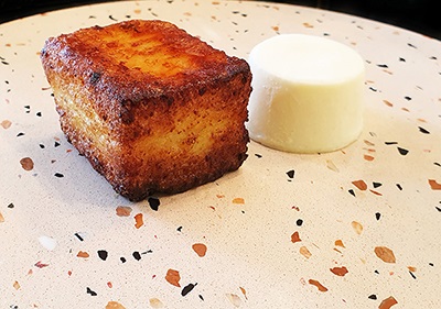 Torrija de brioche con helado cítrico (Bruno Lombán, Quince Nudos. Ribadesella, Asturias)