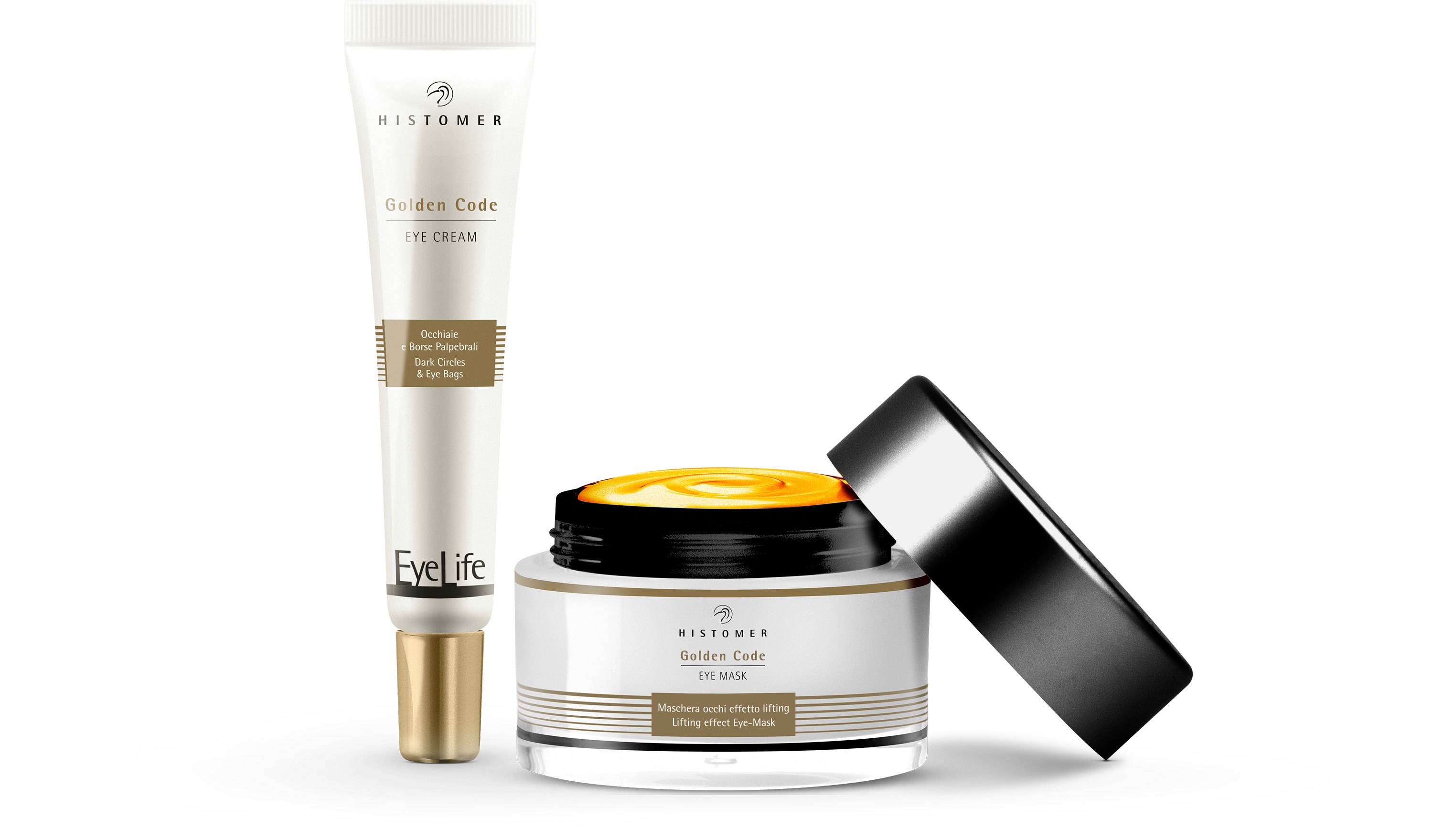 MODO DE USO: aplicar 1-2 veces a la semana en la zona del contorno de ojos. Dejar actuar durante 10-15 minutos y luego retirar con agua. Tonificar inmediatamente, después de aplicar Histomer Golden Code Eye Cream.