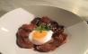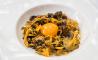 Chantarellas salteadas con huevo, papada de ibérico y hierbas frescas