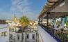 Si lo que se quiere es relajarse un poco y disfrutar de las agradables temperaturas y el impresionante skyline de la ciudad, el sitio indicado es la terraza de Vincci La Rábida 4* donde se pueden degustar cuidadas especialidades culinarias al mismo tiempo que se disfruta de unas inmejorables vistas a la catedral. Su restaurante “El Mirador de Sevilla” ofrece una variada carta en la que destaca la cocina tradicional sevillana con pinceladas de sofisticación a través de una colección de recetas seductoras que invitan a descubrir Sevilla desde el sentido del gusto. Elaborados con productos de la zona, entre sus platos encontramos entrantes como la Crema de Salmorejo de tomate de rama, salmón marinado y aguacate; pescados como el Atún Rojo de Almadraba, salteado de ñoquis, mango y pimiento del piquillo con aceite de sésamo y lima kaffir; o carnes como el Solomillo Ibérico Braseado, risotto de yuca y apio blanco con caramelo de pimientos asados. Distintas propuestas para comer o cenar bajo el cielo sevillano.