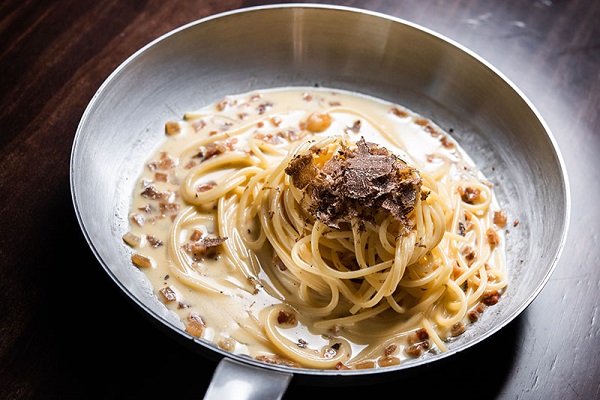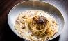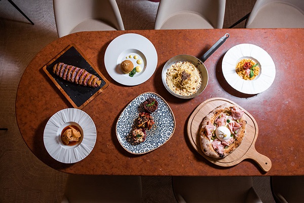 Su especialidad es la cocina siciliana y del sur de Italia, con la que han crecido… y por eso se basan en la tradición, en su origen y ponen especial foco en el producto, ya que sus materias primas más características se traen directamente desde allí. Así ocurre por ejemplo con las harinas con las que amasan sus pizzas, de trigo blando y duro siciliano; la bottarga, que son huevas de atún en salazón, presentes en sus Linguine con bottarga de Favignana; o la zizzona, una mozzarella gigante de 5 kg que se elabora en Battipaglia y que es la estrella de uno de sus entrantes, una tradicional caprese digna del Olimpo. Porque aquí se respira tradición, pero las recetas se interpretan con un toque extra que le aporta el sello gourmet. Véase la Arancina Oziosa, una ‘croqueta’ de arroz típica siciliana elaborada con bisque de gamba roja y que revela en su interior un corazón cremoso de burrata, con un toque de menta y limón sobre una crema de azafrán; o la carbonara -aquí Carbonara de Ozio, terminada en la mesa y servida en sartén-, que aunque sea del centro de Italia, aquí preparan a su manera y la ‘englorian’ con un añadido de trufa negra mesentericum. No hay que perderse tampoco sus tres Caponatas: la Occidental, la Central y la Oriental, uno de los platos más representativos de la cultura culinaria de la isla, totalmente vegetal, con tantas versiones como pueblos, pero con un único hilo conductor que es su característico sabor agridulce.