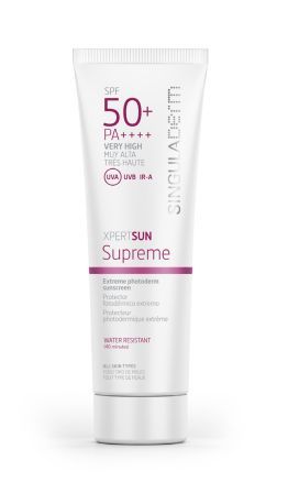 Gracias a sus continuos avances en materia de fotobiología, el equipo científico de SingulaDerm se ha centrado durante los últimos años en el diseño de una nueva e inexistente generación de mecanismos de protección solar molecular a partir del estudio de dianas celulares fotobiológicas. Adentrándose en el campo de la fotodermatología, la primera marca de cosmética molecular, siempre pionera en investigación, aprovecha el poder de los FILTROS FOTODÉRMICOS para formular fotoprotectores con menor carga de filtros comunes (muchos de ellos nocivos) e introduce XPERTSUN, la perfecta sinergia entre filtros fotodérmicos que proporciona un factor SPF 50/30 frente a la radiación UVB y una protección máxima frente a la radiación UVA (PA++++/PA+++, según el grado de protección de la JCIA, Asociación de la Industria Japonesa Cosmética).