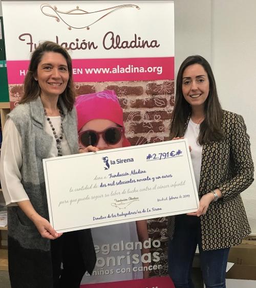 La Sirena, cadena especialista en congelados, ha donado la recaudación de su rifa anual a la Fundación Aladina, que tiene como objetivo ayudar a niños y adolescentes enfermos de cáncer y a sus familiares proporcionándoles apoyo emocional, psicológico y material. Concretamente el soporte se destina al programa de “apoyo emocional y terapias lúdicas para niños con cáncer en hospitales”.