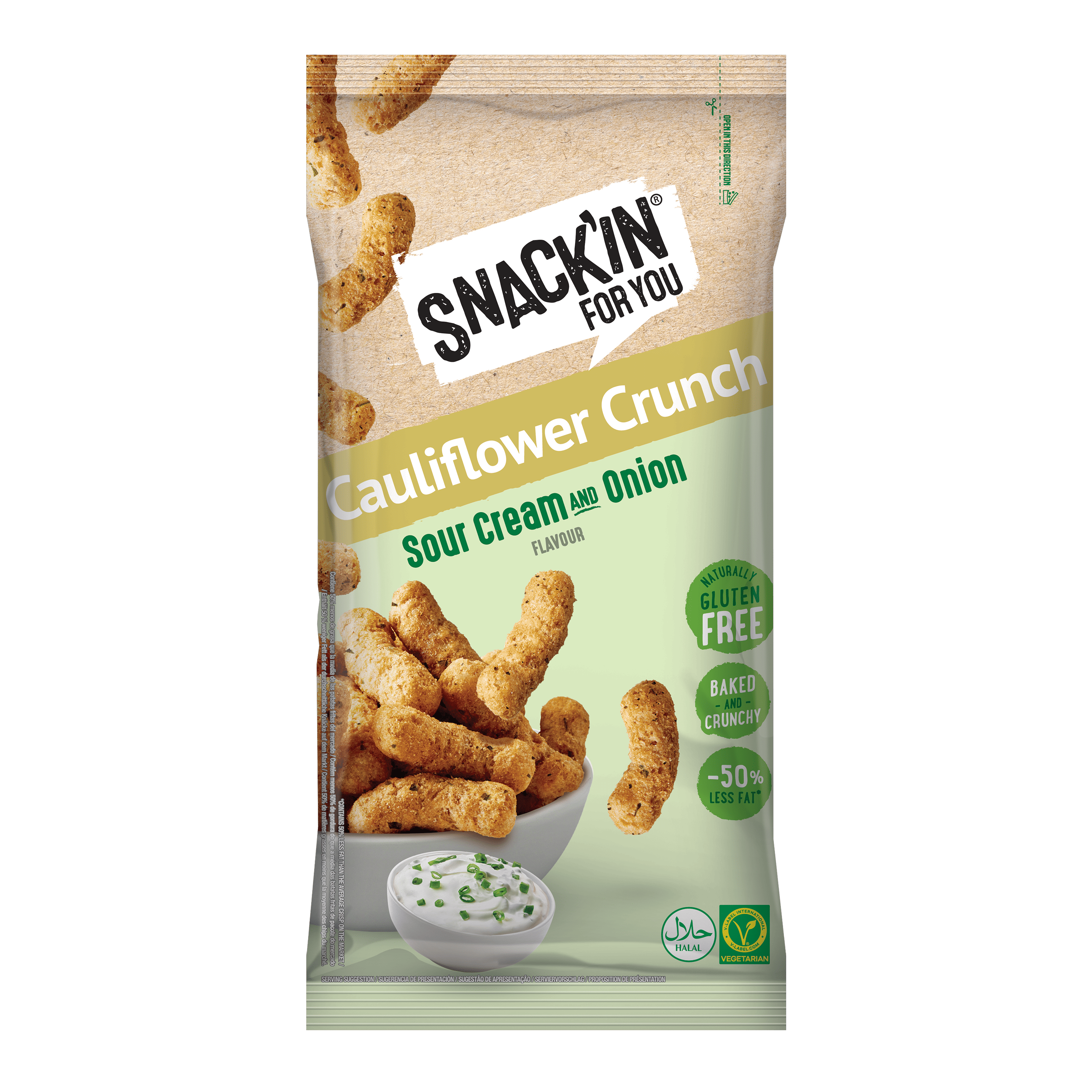 Los Coliflor Crunch están elaborados con coliflor, harina de garbanzo, arroz y proteína de guisante, constituyendo una fuente vegetal de proteínas con un 50 % menos de grasa que los aperitivos tradicionales. Además, se presentan en dos sabores -Sour Cream & Onion, suave y cremoso, y Paprika y Lima, atrevido y refrescante- y en un nuevo envase más grande, pensado para compartir.