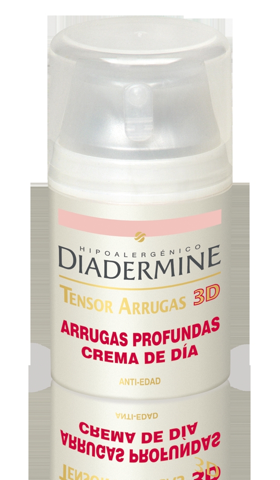 Para combatir las arrugas más marcadas, los Laboratorios Diadermine lanzan la línea Arrugas Profundas de Tensor Arrugas 3D formada por dos cremas -día y noche- en un práctico envase con dosificador, para aplicar diariamente la cantidad necesaria. A partir de su fórmula específica con Microrellenador Hialurónico, esta nueva línea combate la pérdida de ácido hialurónico de la piel y las arrugas profundas en sus tres dimensiones: en superficie, relajando y alisando la piel; en la estructura, mejorando el tejido de soporte; y en profundidad, rellenando las arrugas desde el interior.
