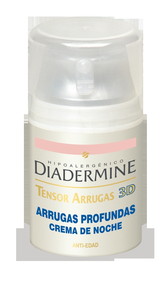 Diadermine lanza la nueva línea Arrugas Profundas de Tensor Arrugas 3D formada por dos cremas específicas –día y noche- para combatir las arrugas más marcadas Su fórmula con Microrellenador Hialurónico, un potente hidratante con microesferas de ácido hialurónico, consigue atenuar las arrugas profundas en sus tres dimensiones