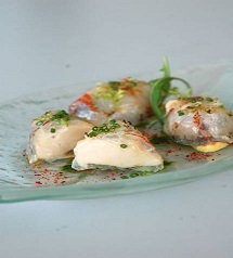 Carpaccio de Langostinos Rellenos de Ganache de Foie Gras