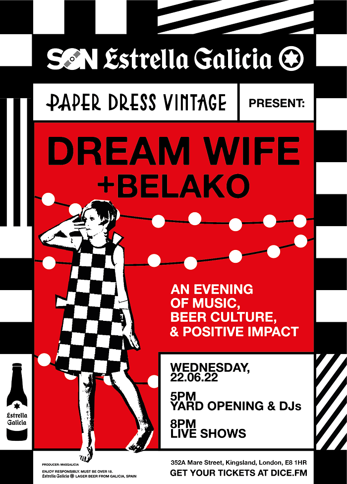 “Estamos encantados de asociarnos con Paper Dress Vintage. La pasión por la cerveza, el impacto positivo y el apoyo a los nuevos talentos son ejes fundamentales de la marca SON Estrella Galicia y con la posición de Paper Dress en la vanguardia de la promoción de artistas emergentes en Londres junto con su compromiso con la ropa reciclada hemos encontrado el socio perfecto. Desde 2009, hemos apoyado a talentos emergentes con nuestras experiencias SON Estrella Galicia –apostando frecuentemente por nuevos artistas que acaban siendo cabezas de cartel– y vemos un futuro brillante en las carreras de Dream Wife y Belako, por lo que estamos deseando verlos en una sala pequeña tan especial”.