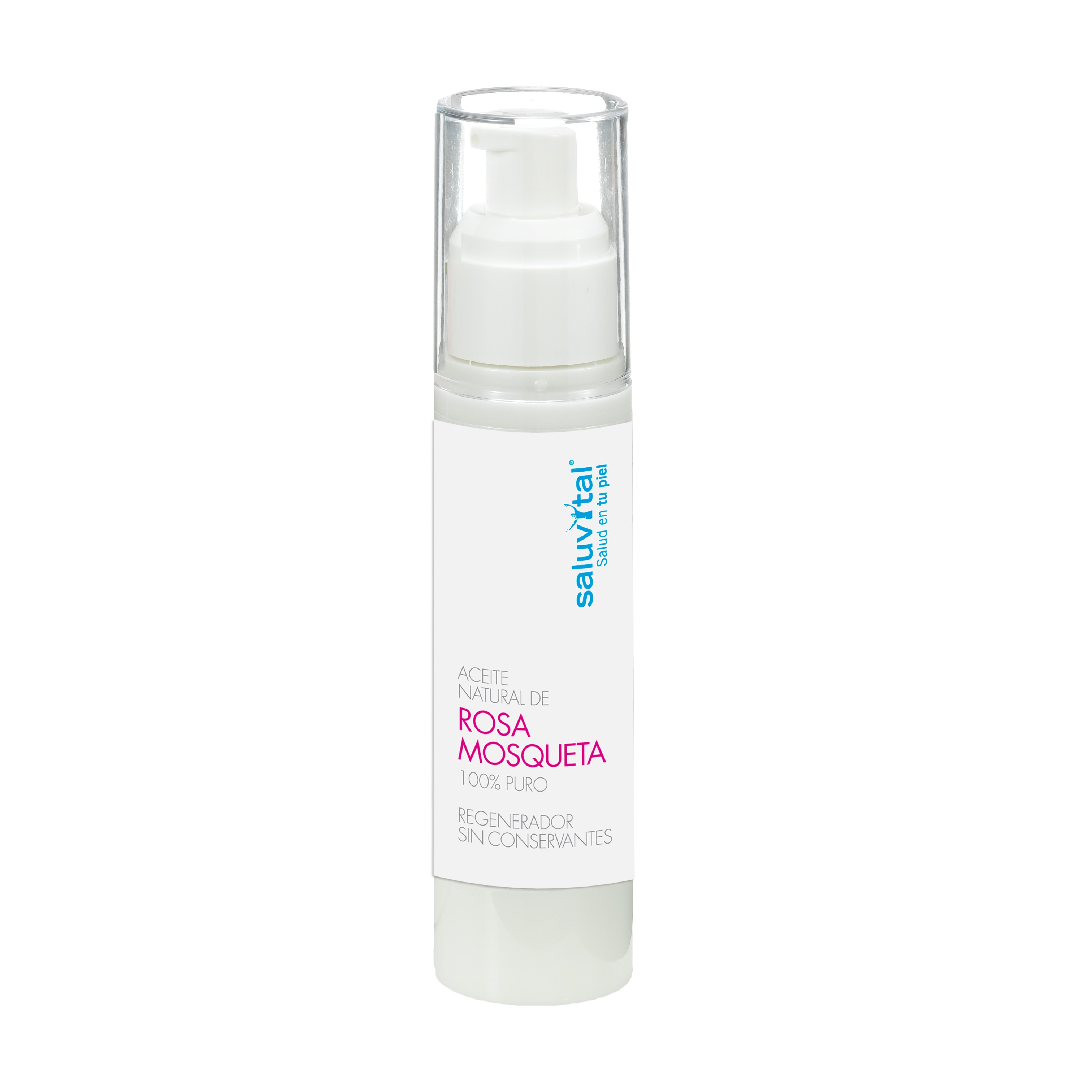 El Aceite Natural de Rosa Mosqueta 100% puro de Saluvital, obtenido por primera presión en frío, presenta un elevado contenido en ácidos grasos esenciales (aproximadamente un 80% de su composición) que le confieren excelentes propiedades regeneradoras. Gracias además a su contenido en antioxidantes, estimula la regeneración y reparación del tejido epidérmico, por lo que atenúa cicatrices, estrías, manchas y arrugas, previene el envejecimiento prematuro de la piel y difumina las manchas de la misma. Aroma sin alérgenos.