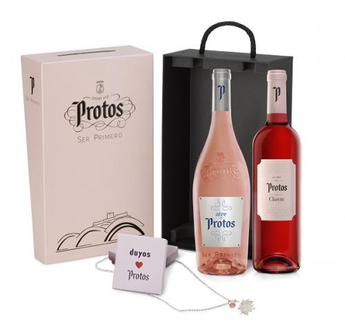 Un regalo exclusivo ya que la bodega ha creado un estuche especial en color rosa que contará con la pieza de Juan Duyos y dos botellas de la añada 2020 : Aire de Protos y Protos Clarete.