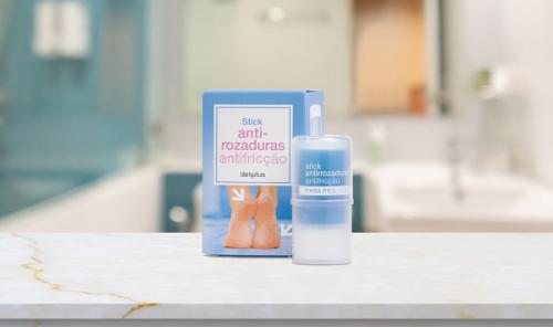 Mercadona, compañía de supermercados físicos y de venta online, dispone en sus lineales del Stick Anti-rozaduras Deliplus para prevenir y proteger los pies de las rozaduras y ampollas provocadas por el calzado, mediante una película protectora invisible que no resbala, reduciendo de forma inmediata el rozamiento.
