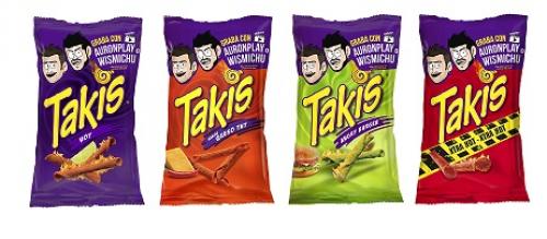 Las bolsas de 100g y 150g, diseñadas en exclusiva por Anothink para la promoción, incluyen las caricaturas de AuronPlay y Wismichu, e incluirán en su interior códigos canjeables en la web de Takis por grandes premios. La promoción estará disponible desde el 1 de marzo hasta el 31 de mayo en todo el territorio español.