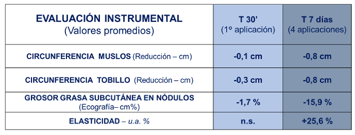 La Máscara de Barro Corporal tiene rigurosos estudios de I+D que avalan su eficacia y aportan resultados clínicamente probados, algo de lo que se caracteriza la marca, la única en demostrar su eficacia en toda su gama de productos. En este caso, tras la primera aplicación los resultados no sólo son visibles, sino que son espectaculares. Tras 4 aplicaciones en un periodo de 7 días se reduce la circunferencia en muslos y tobillos casi 1 cm, el grosor de la grasa subcutánea es más de un 15% menor y la elasticidad de la piel aumenta significativamente (25% aproximadamente).