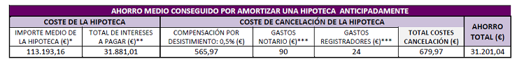 a octubre de 2016). Para calcular el ahorro, al gasto en intereses se han restado los costes por cancelar un préstamo, es decir, los gastos por la comisión de cancelación, según el máximo previsto por ley (1%).