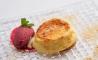 Tarta de queso Alma con helado de frutos rojos y crumble de lima