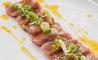 Tartar de atún rojo sobre fresas y emulsión de cítricos