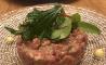 Tartar de bonito con salmorejo de tomate de huerta propia