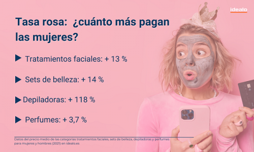 Según recopilan los expertos de idealo, a pesar de esta mejora en la tasa rosa en el sector de la belleza, una mujer tiene que pagar de media unos 118,76 € por una depiladora, mientras que el coste medio de un dispositivo con el mismo fin para hombres suele rondar los 54,36 €, es decir, ellas pagan el doble que ellos por un artículo con la misma función. Este es el caso más paradigmático, pero no el único.