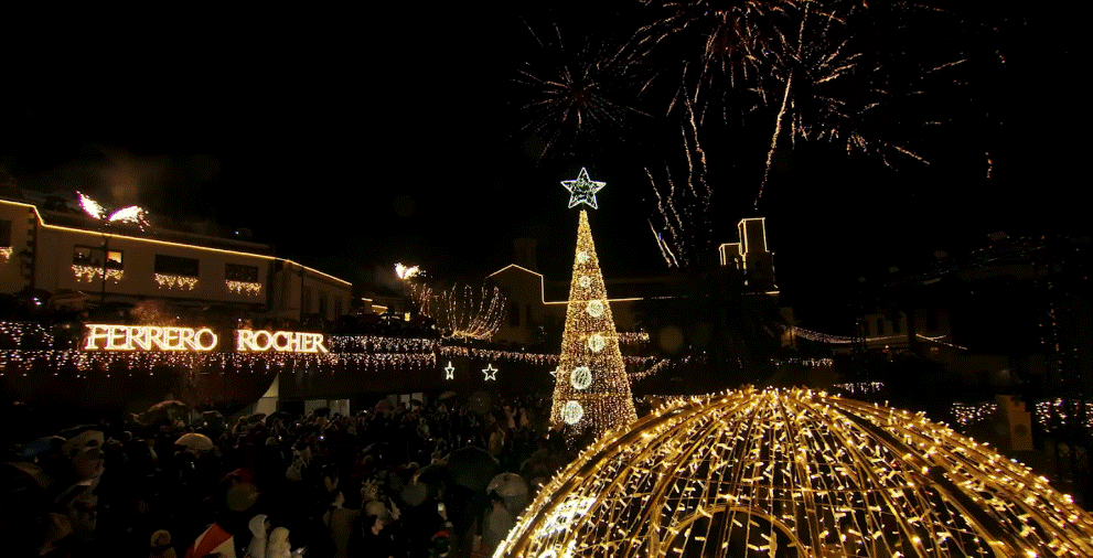 El ansiado alumbrado de Ferrero Rocher fue revelado ayer, 17 de diciembre, en una ceremonia inolvidable en el acogedor pueblo de Gran Canaria. El evento contó con la participación de Jesús Vázquez, embajador histórico de la campaña, el equipo de Ferrero y Francisco Juan Perera, alcalde del municipio.