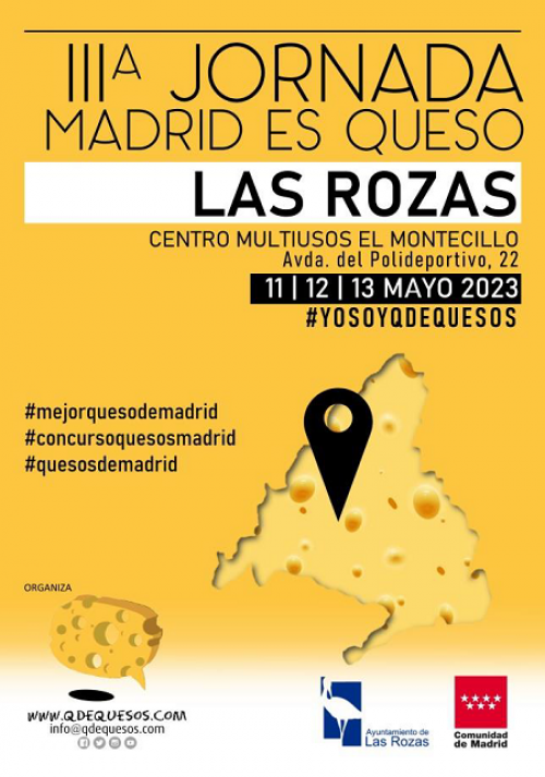 El “Tercer Concurso de los Mejores Quesos de Madrid” se realizará durante la mañana del día 11 de mayo, en el Centro Multiusos de Las Rozas y cuenta con la colaboración de la Concejalía de Cultura, Juventud y Ferias del Ayuntamiento de Las Rozas y con el patrocinio de la Dirección General de Agricultura, Ganadería y Alimentación de la Consejería de Medio Ambiente, Vivienda y Agricultura de la Comunidad de Madrid.