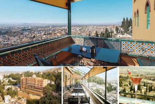 Inaugurado en 1910 por el rey Alfonso XIII –bisabuelo de nuestro actual monarca, Felipe VI– este 5* de estilo palaciego que ‘levita’ sobre Granada como majestuosa antesala de la monumental Alhambra (situada a solo 10 minutos a pie), tiene la capital nazarí a sus pies. Y nos asoma a ella desde su terraza. Abierta desde las 10:30h de la mañana hasta las 23:45h de la noche, ofrece las más increíbles vistas a todas horas del día, lo que permite descubrir cómo Granada va cambiando de matices cromáticos en función del momento. Allí es posible también hacer un break gastronómico disfrutando de las vistas mientras saboreamos las variadas propuestas que ofrece la carta de su Snack-Bar: desde un surtido de quesos o de tapas a ensaladas, sopas y cremas, pastas, sandwiches, hamburguesas o auténticas tentaciones culinarias como su ‘Atún rojo a la parrilla’, la ‘Paletilla de cordero lechal’… ¡o incluso ‘Caviar iraní Beluga’ maridado con champagne!