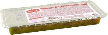 Se presentan en cómodas barquetas rectangulares en plástico transparente de 400 gramos de peso. Se trata de un producto fresco con múltiples opciones en la Hostelería y la Restauración. Las terrinas permiten elaborar platos sorprendentes de forma muy sencilla y visual. Una perfecta combinación de modernidad, autenticidad y originalidad. El formato del producto permite elaborar platos muy distintos, al permitir cortes precisos para una perfecta presentación, en un reducido período de tiempo.