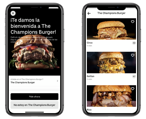 Una vez en el interior del recinto de The Champions Burger, el usuario podrá consultar la oferta gastronómica de los restaurantes disponibles gracias a la tecnología de Uber Live. Al abrir la app de Uber Eats, la plataforma le mostrará las burgers de los más de 20 food trucks disponibles.