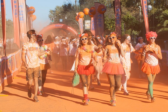 The Color Run by Desigual revolucionó Sevilla por segundo año consecutivo. Esta peculiar prueba de running, que cuenta con el apoyo de KH-7, reunió a más de 11.000 participantes, entre los que destacaron algunos muy conocidos como la campeona de España de Triatlón María Pujol; el campeón del mundo de Ultramán, Juan Bautista Castilla ‘Chamba’ y el músico Hugo Salazar. Todos ellos pudieron comprobar por qué se conoce a este evento no competitivo como ‘los 5 kilómetros más felices del planeta’.