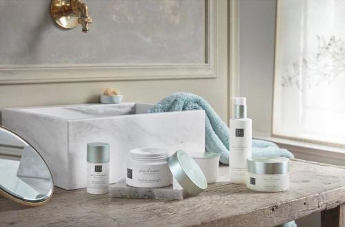 The Ritual of Namasté…, una línea desarrollada con un 98% de ingredientes de origen natural de fuentes responsables que juntos consiguen devolver a la piel a su estado óptimo de salud y belleza sin utilizar aceites minerales, siliconas, microplásticos, perfumes ni colorantes artificiales u otras sustancias potencialmente dañinas. Un lujoso cuidado diario para la piel que ahora también cuida del cuerpo con cuatro nuevos productos. Un exfoliante, una crema de ducha nutritiva, una crema de hidratación intensa y el más delicado y efectivo desodorante. Productos que aúnan el poder de activos como el ácido hialurónico, la Vitamina E, la manteca de karité, aceite de almendras, rosa y AHA´s.