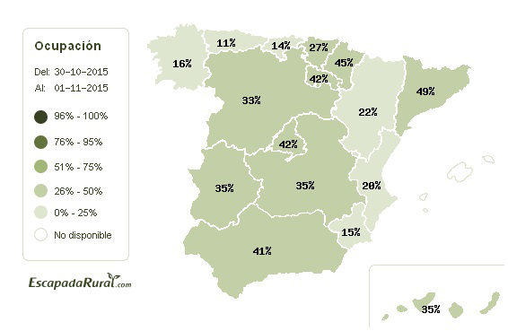 En algunas comunidades como Andalucía, Aragón, Asturias, Islas Baleares, Islas Canarias, Castilla y León, Extremadura y Galicia han decidido pasar el día festivo al lunes 2 de noviembre. Esto ha supuesto un aumento de la ocupación en Andalucía (41%) e Islas Canarias (39%), que se ven muy favorecidas durante esta jornada. Esto puede deberse a que el turismo rural se caracteriza por las estancias cortas y de proximidad. Además, como refleja el Observatorio del Turismo Rural, los turistas rurales andaluces se quedan, principalmente, en su autonomía.