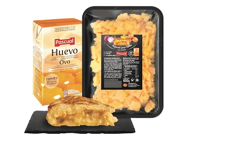 El Preparado para Tortilla de Patata Pascual es una combinación de patatas pochadas con un toque de cebolla frita que se presenta en formato individual de 650 gr. (6 barquetas por caja). Para conseguir la tortilla perfecta la compañía recomienda utilizar 300 ml de huevo líquido pasteurizado Pascual por cada barqueta, de fácil manejo y dosificación y con mayor seguridad bacteriológica.