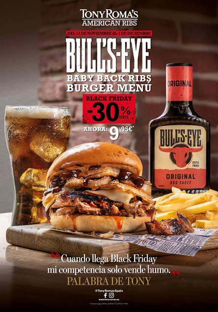 Como no podía ser de otra manera, este menú especial para Black Friday tiene un 30% de descuento para todos los clientes de Tony Roma’s, con lo que su precio final es de 9,95 €, y estará disponible hasta el próximo domingo 1 de diciembre en todos los establecimientos de la cadena.