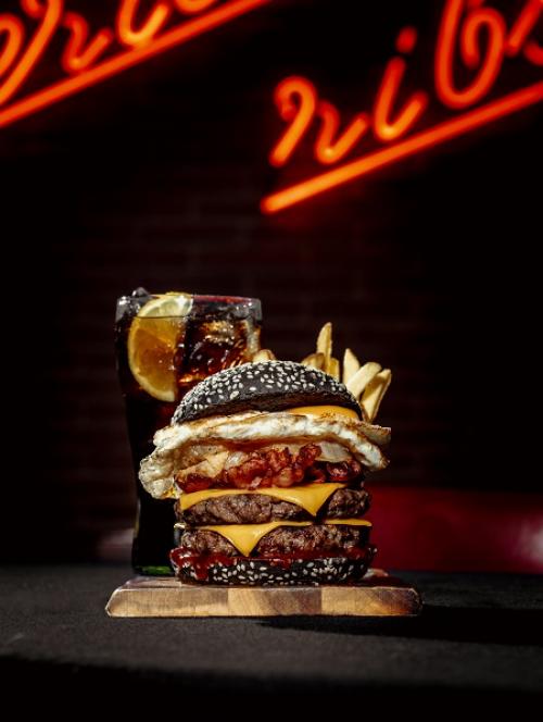 Se trata de una nueva burger de Edición Limitada, que destaca por su espectacular tamaño, y que está elaborada con doble de todo: doble de carne, queso cheddar y bacon crujiente, y coronada por dos huevos, sus emblemáticos aros de cebolla y salsa BBQ. Una explosión de ingredientes con todo el sabor, servidos en pan negro de brioche y sésamo, que le aporta ese toque creepy tan propio de esta fiesta.