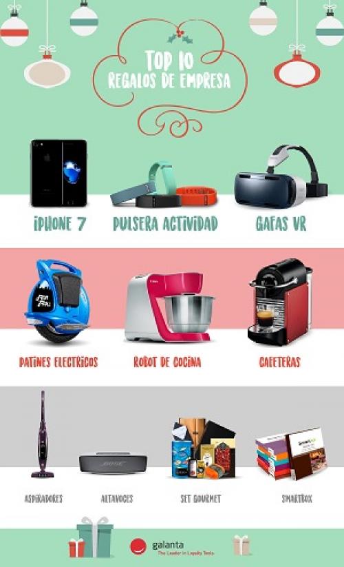 En España, según los datos recabados por Galanta -la marca de Mediapost Group especializada en soluciones web para la captación y la fidelización de clientes-, entre los regalos más solicitados por las compañías en estas fechas destacan nada más y nada menos que el Iphone 7, las pulseras de actividad para controlar las horas de ejercicio y sueño y las gafas de realidad virtual.