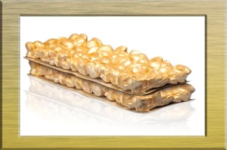El Turrón de Oro se elabora con ingredientes de la región de Agramunt de manera artesana y respetando el tiempo natural de todos los procesos. Se presenta en tabletas de 250g dentro de una caja de elegante diseño.
