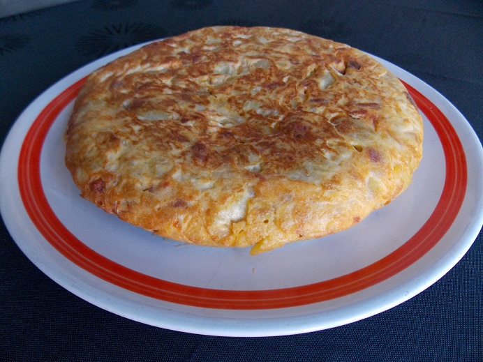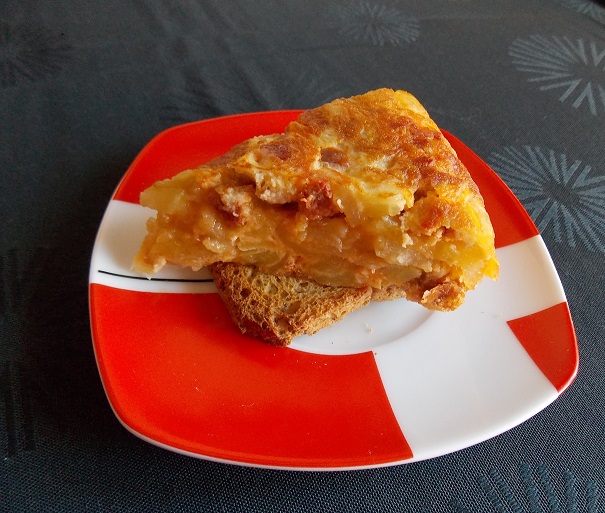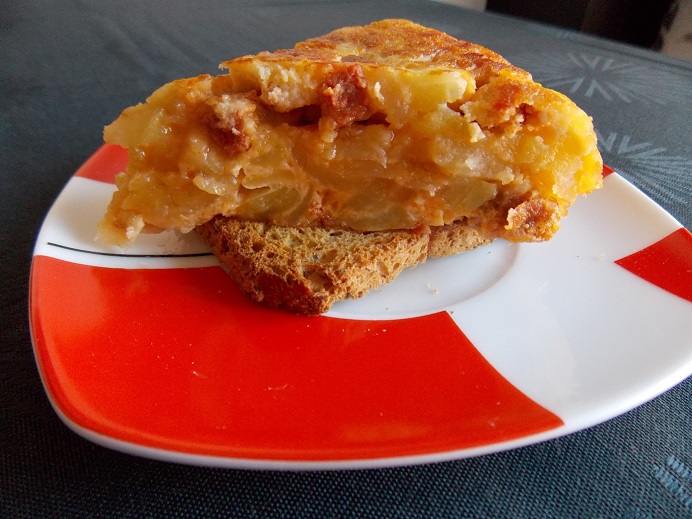 Tortilla de patatas con daditos de Longaniza Ibérica roja