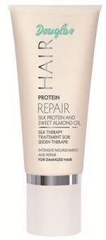 | Douglas Hair Protein Repair Intensive Protein Treatment | Douglas Hair Protein Repair Silk Therapy | | | | | Tratamiento de reparación y nutrición intensa para cabellos dañados, resecos o quebradizos. Penetra profundamente en cada pelo para regenerarlo desde su interior, fortaleciendo y haciéndolo más resistente de cara a futuras agresiones externas. Asimismo, da flexibilidad y proporciona un brillo increíble. ¿Cómo se consigue? Gracias a la poderosa fuerza de ingredientes como las proteínas que se extraen de las almendras, cuyo aceite suaviza y enriquece desde el núcleo. Además, contiene también keratina y manteca de karité, que hidratan y aportan nutrientes. Aplicar sobre el cabello limpio y húmedo de manera homogénea y dejar actuar durante 10 minutos. Después, aclarar con abundante agua. Precio: 1,95€ | Terapia suavizante con efecto acondicionador, específicamente pensada para cabellos secos y dañados, sobre todo por agresiones externas como los rayos uva o la exposición a un calor excesivo. Consigue una absoluta hidratación y aporta un brillo absoluto a la melena, a la vez que garantiza una total suavidad. ¿Cómo se consigue? Gracias a ingredientes activos como las proteínas de aceite de almendras, que logran total suavidad. Aplicar sobre el cabello limpio y húmedo de manera homogénea y dejar actuar durante 5-10 minutos. Después aclarar con abundante agua. Precio: 4,95€ | |