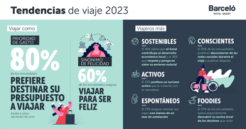 La encuesta realizada por Barceló Hotel Group revela las tendencias viajeras para este 2023. Turismo más consciente y sostenible, y un mayor interés por vivir experiencias locales lideran las nuevas modalidades de viaje