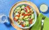 - Ensalada griega de tomate y pepino. En esta elaboración de inspiración griega, encontramos un ingrediente que siempre es un gran aliado ante el calor, el pepino. Es ideal porque hidrata y refresca, ya que contiene una gran cantidad de agua, en torno al 96%. Además, es bajo en calorías y grasas, y contiene fibra, algo que contribuye a mejorar nuestra digestión.