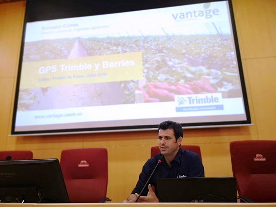 Trimble Agricultura, de la mano de su red de distribución oficial Vantage Iberia Occidental, presentó en Palos sus últimas novedades en el marco de una jornada técnica celebrada el pasado 2 de julio en el salón de actos de la cooperativa onubense “Fresón de Palos”. El evento ha reunido a más de 30 cooperativistas, que han tenido ocasión de conocer novedades como los nuevos sistemas ISOBUS, que simplifican la interconexión de diferentes tipos de maquinaria, tractor y sistema GPS. También se han mostrado los sistemas recomendados para este tipo de cultivos, como pueden ser la pantalla GFX-750 y el autoguiado Autopilot Motor Drive.