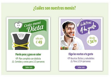 Los usuarios pueden suscribirse a cualquiera de las dos cestas que están disponibles en la web: el Menú Dieta, para aquellos que cuidan su peso; y el Menú a tu Gusto, ideal para comidas y cenas, con 10 recetas posibles a elegir.