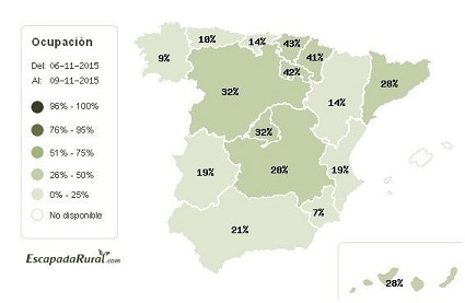Según los datos de Escapadarural.com, la media nacional de ocupación en turismo rural durante el puente de La Almudena se sitúa en el 25%. A nivel autonómico, despuntan País Vasco (43%), La Rioja (42%) y Navarra (41%)