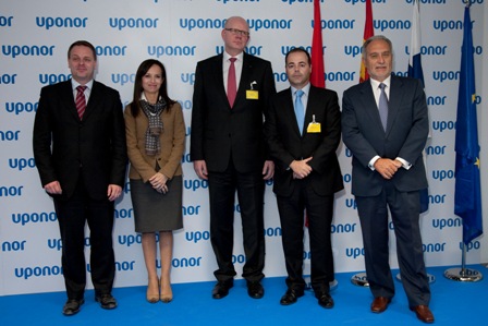 Dña. Beatriz Corredor, puso de manifiesto la apuesta del Gobierno de España por la eficiencia energética y el uso de energías renovables tanto en la nueva construcción como en los edificios ya construidos, como cuestiones básicas para potenciar la sostenibilidad del entono urbano. Por su parte D. Esteban Parro, Alcalde de Móstoles, transmitió su agradecimiento a Uponor por haber depositado su confianza en este municipio, y como clausura de las intervenciones, el Ministro de Vivienda de Finlandia, D. Jan Vapaavuori catalogó las nuevas instalaciones de Uponor, como un excelente ejemplo de soluciones de construcción sostenible, aplicadas tanto a entornos industriales como a oficinas. Uponor no es sólo capaz de conseguir ahorros energéticos significativos, sino también de mejorar la calidad de las condiciones laborales de sus empleados.