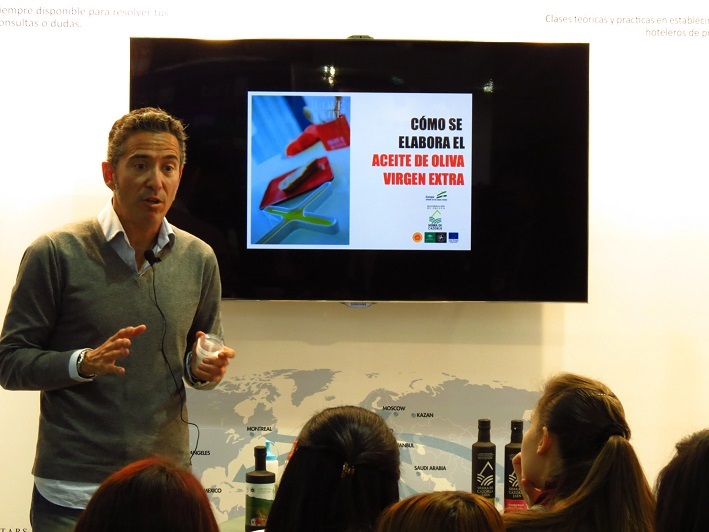 El dato se ha obtenido al sumar el número de interesados que se acercaban al stand para pedir información sobre la oferta educativa de la Escuela con los que han presenciado alguna de las catas o actividades prácticas llevadas a cabo por expertos del sector turístico. Y es que el espacio Vatel España ha contado con muestras tan sorprendentes como una de microvegetales, flores y brotes para el ámbito culinario, otra de aceite de oliva virgen extra, de pan o quesos franceses, de zumo de uva o de gazpacho con fresa. “En este tipo de talleres enseñamos cómo elegir, distinguir y saborear los mejores productos de la dieta mediterránea, básica para los establecimientos restauradores más gourmet. En nuestro caso concreto, hemos presentado los nuevos zumos de aceituna de la campaña 2014-15 pertenecientes a la D.O. Sierra de Cazorla”, ha comentado Fernando R. Ortega, Fundador de Iloveaceite.